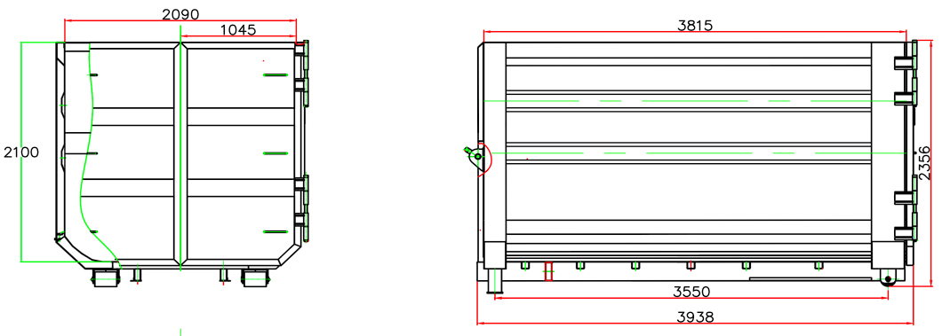 | 9.3メートルボックス | 45度U型、箱板材質NM450、底5辺4 |